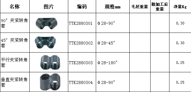 ③定位件:是為了工件在加工過程中達到 尺寸精度要求,而將工件 定位的元件 包括:定位角尺、定位平尺、平面角尺、V型定位件、異心圓停擋 ④調整件:是用于元件與工件之間的位差間隙調整 包括:調高器、調整墊片 ⑤壓緊件:是為了工件在加工過程中不被位移,而將工件壓緊在平臺或基礎元件上的元件 包括:垂直螺旋壓緊器、水平螺旋壓緊器、45°螺旋夾緊器、補償螺旋夾緊器、垂直壓式夾具、水平推式夾具 ⑥鎖緊件:是為了元件與元件之間的定位鎖緊用 包括:鎖緊銷、沉頭鎖緊銷、沉頭鎖緊銷 、手柄鎖緊銷、連接鎖緊銷、磁性銷 ⑦合 件:是作用于元件與元件之間的連接作用 包括:90度夾緊轉角套、45度夾緊轉角套、平行夾緊轉角套、垂直夾緊轉角套、標準型支撐腿、帶剎萬向輪型支撐腿、可固定型支撐腿、框架結構型支撐座、液壓升降型支撐座、支撐軌道 ⑧其他件 包括:肘節(jié)園固定盤、肘節(jié)方固定盤、偏心孔肘節(jié)固定盤、止動環(huán)、接地器、螺旋夾緊 、夾管、起吊環(huán)、兩點夾緊橋、三點夾緊橋、多用途支撐模板、平臺防護板、工具推車